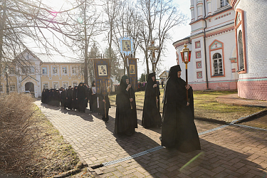 В понедельник Светлой седмицы председатель Синодального отдела по монастырям и монашеству совершил Литургию в Свято-Троицком Александро-Невском ставропигиальном монастыре